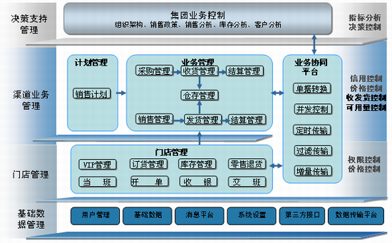 金蝶K/3集团分销管理解决方案对集团总部与下属分支机构间的业务及各分支机构间的业务往来进行管理,提供统一业务模板,统管或分管基础资料,机构间数据传递与单据转换,整体业务控制和分析等操作管理功能。分销管理系统有集中式、分布式、混合式三种部署方式。